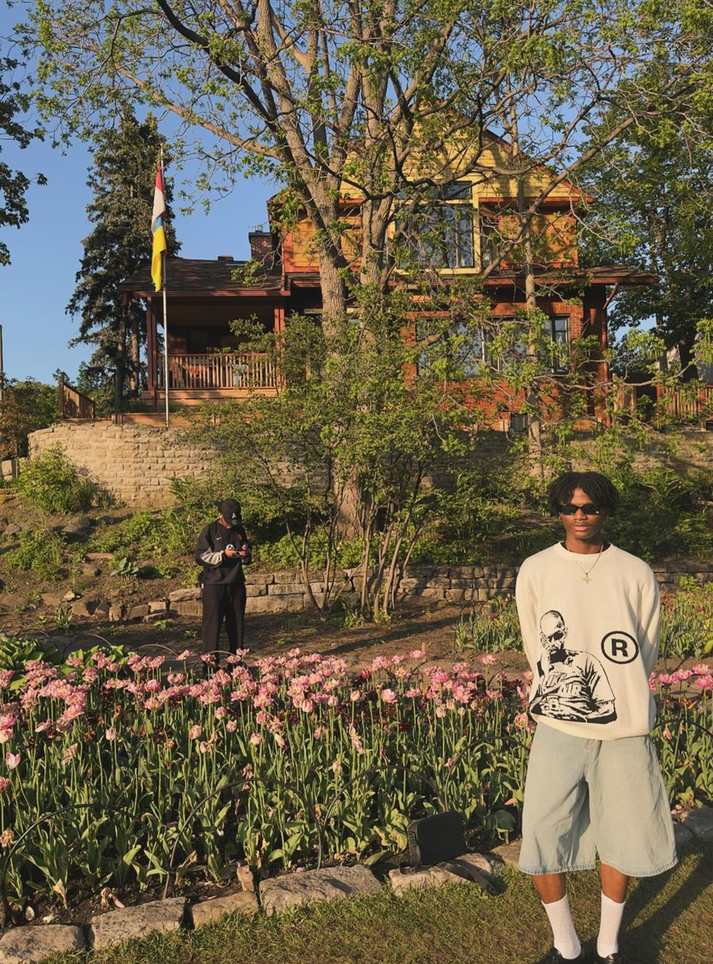 Model is 1.91 cm and wears size XL